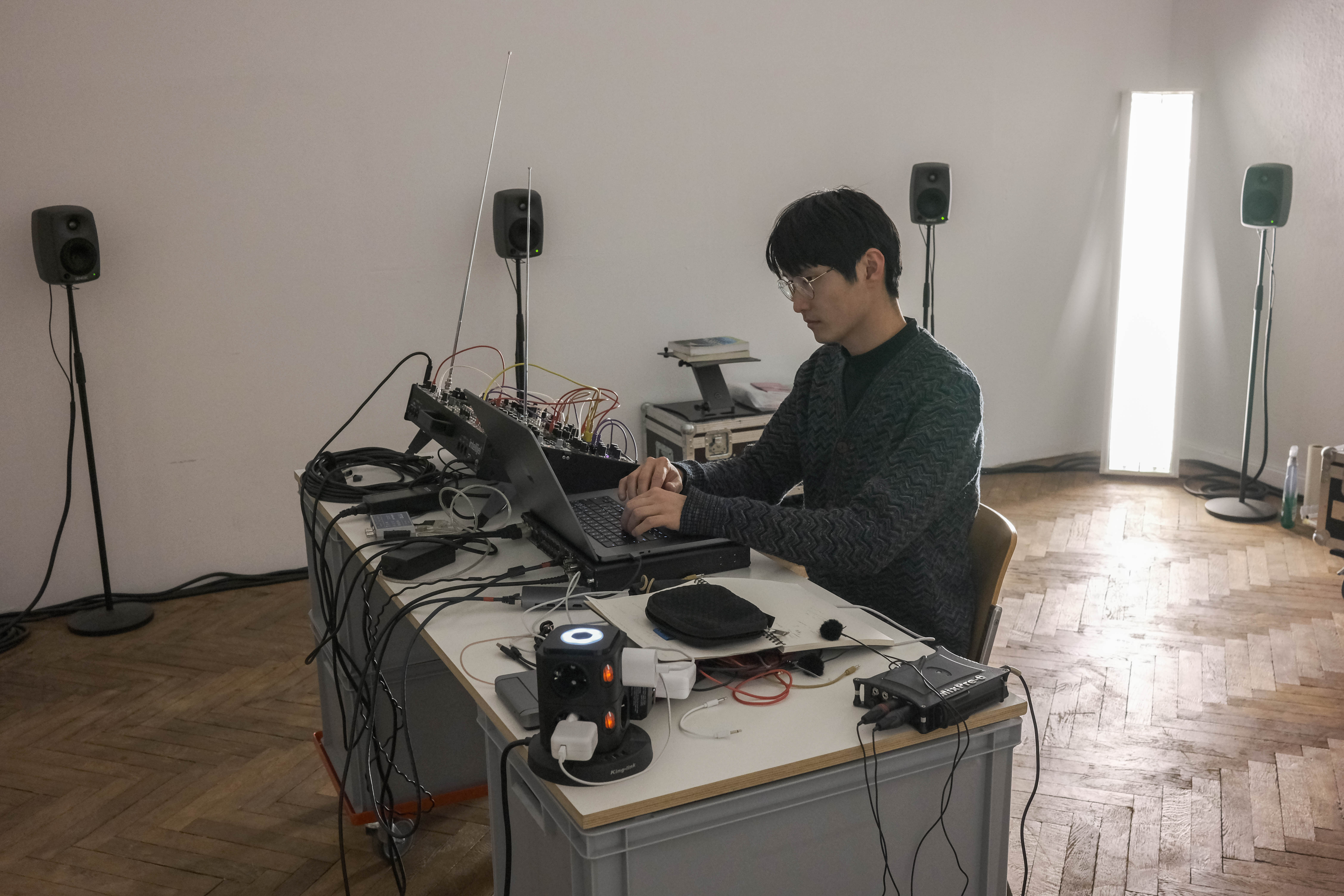 Zhao’s practice spans acousmatic music, sound installation, performance, and new media. Since 2019, he has focused on spatial sound, creating multichannel compositions and installations. His work explores questions of time, technological mediation, and our evolving relationship with both the digital and natural worlds. He frequently collaborates across disciplines, working with practitioners and researchers in visual art, theatre, science, and technology.